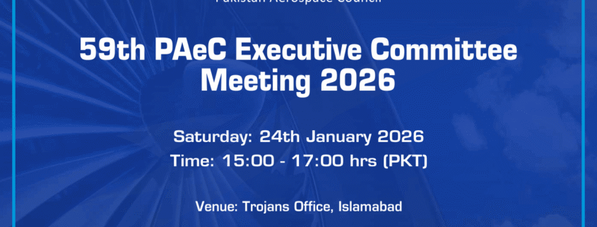 The 59th Executive Committee Meeting of the Pakistan Aerospace Council (PAeC) will be held on Saturday, 24th January 2026, at the Trojans Office, Islamabad.